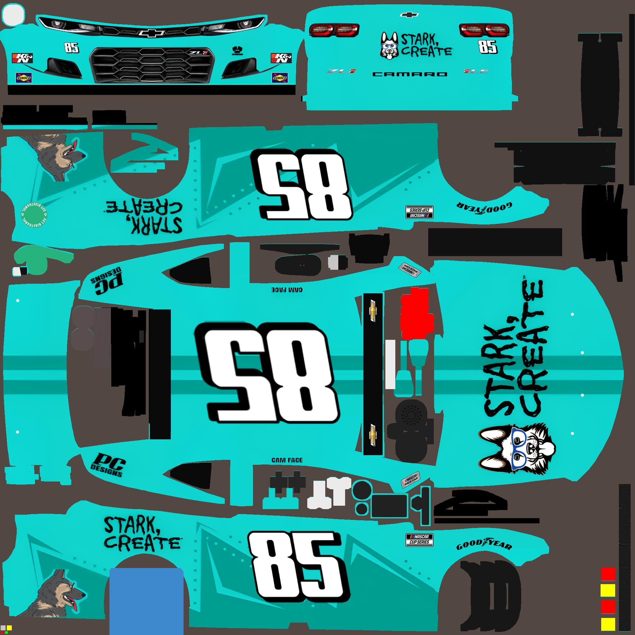 Assign #85 Stark Create Gen 6 Chevy by Bradley Cmejla as your Custom Number paint for the NASCAR Cup Series Chevrolet Camaro ZL1?